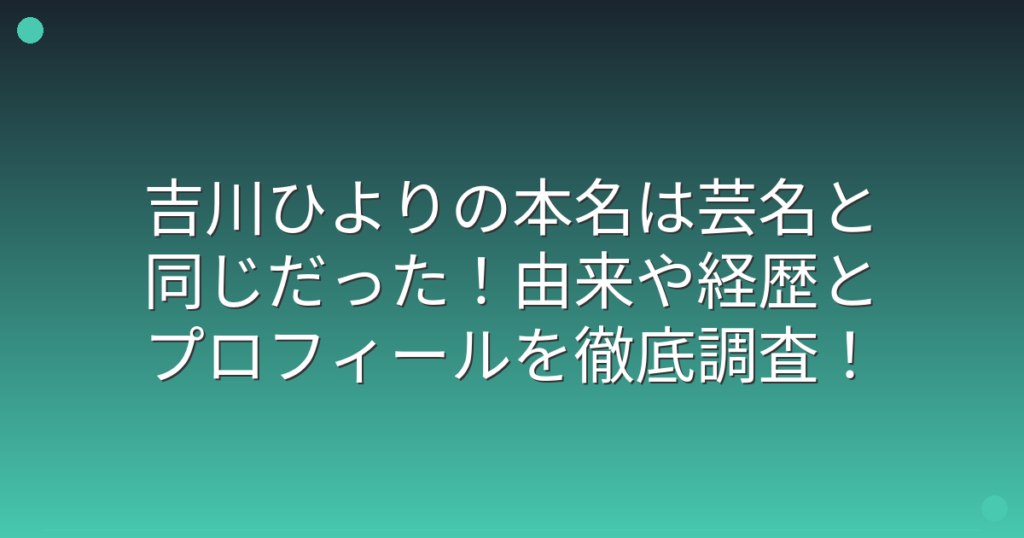吉川ひよりの本名は芸名と同じだった!由来や経歴とプロフィールを徹底調査!