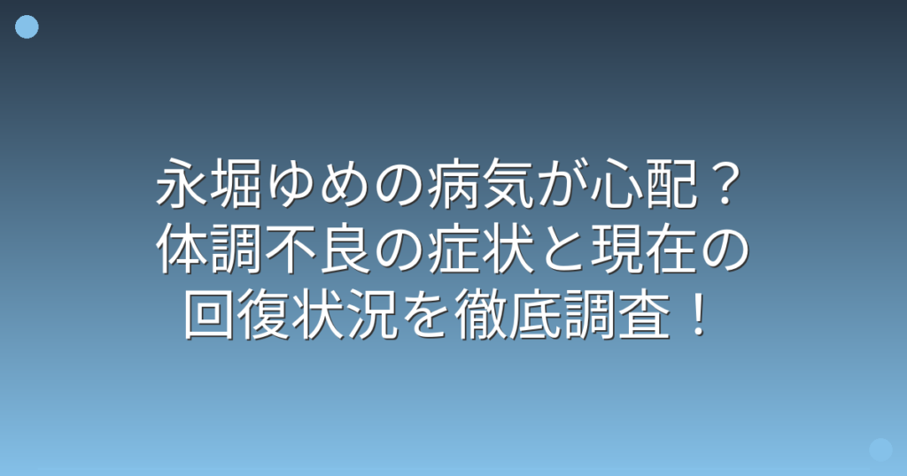 永堀ゆめの病気が心配?体調不良の症状と現在の回復状況を徹底調査!