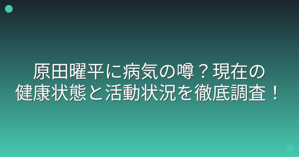 原田曜平に病気の噂?現在の健康状態と活動状況を徹底調査!
