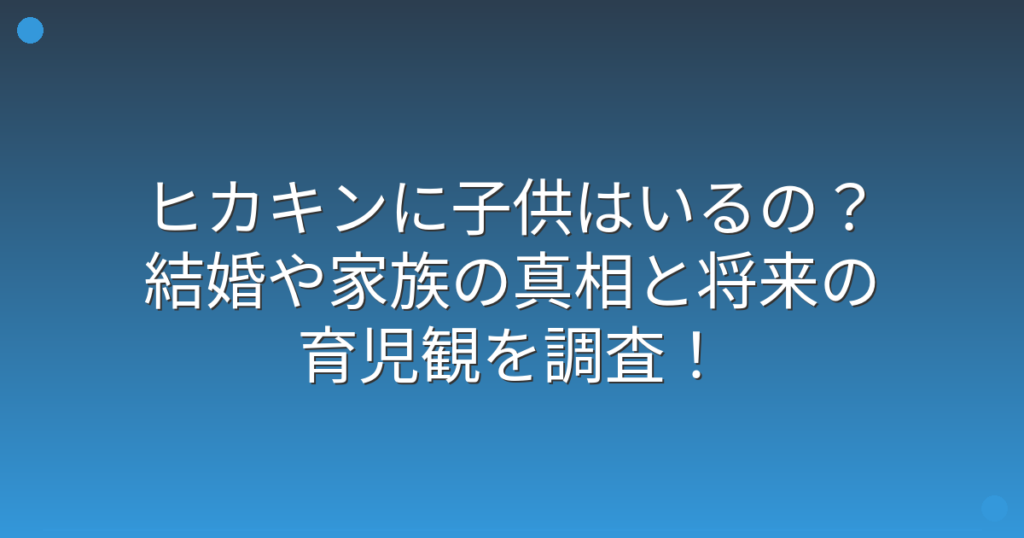 ヒカキンに子供はいるの?結婚や家族の真相と将来の育児観を調査!