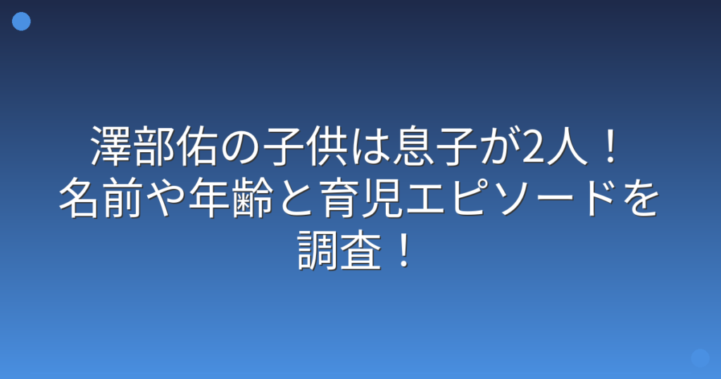 澤部佑の子供は息子が2人!名前や年齢と育児エピソードを調査!