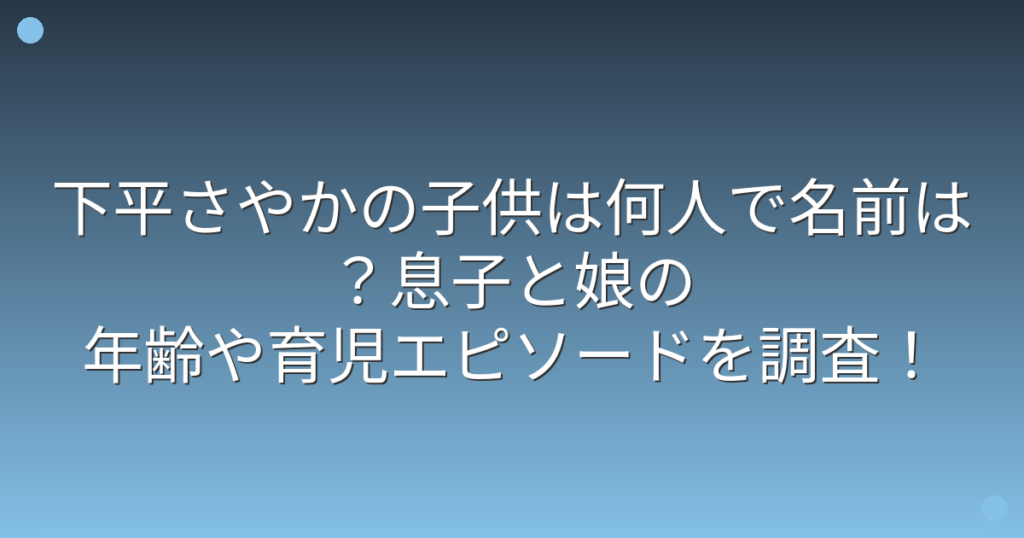 下平さやかの子供は何人で名前は?息子と娘の年齢や育児エピソードを調査!