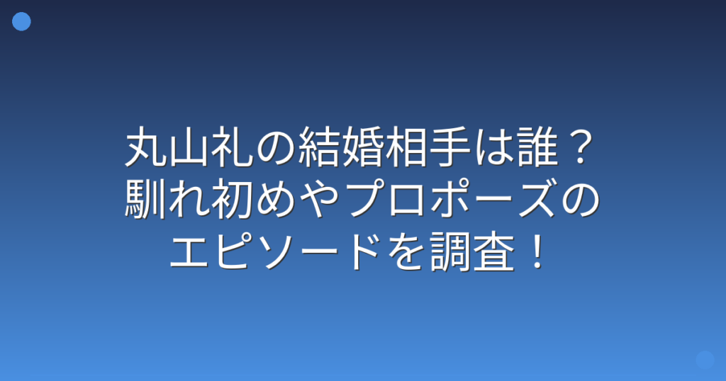 丸山礼の結婚相手は誰?馴れ初めやプロポーズのエピソードを調査!