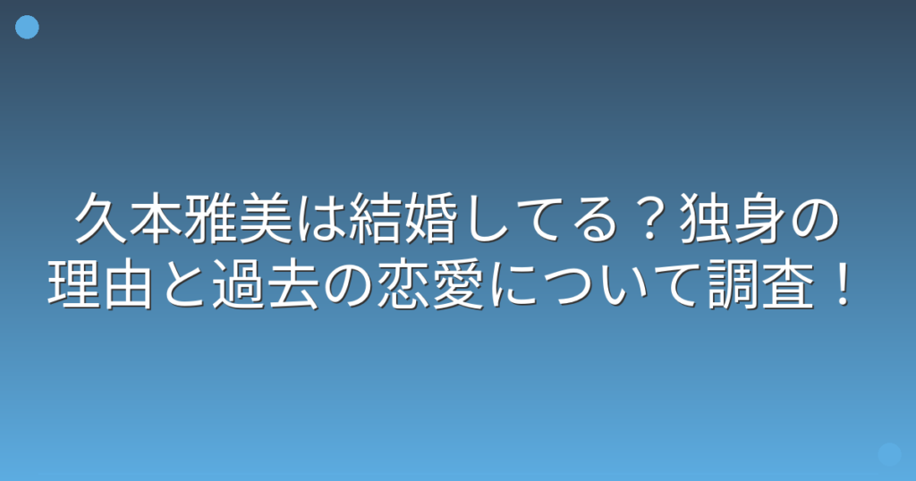 お笑いタレントとして長年活躍されている久本雅美さんの結婚について、気になっている方も多いのではないでしょうか。 テレビで見ない日はないほどの人気タレントですが、プライベートについてはあまり語られることがありません。 そこで今回は、久本雅美... -