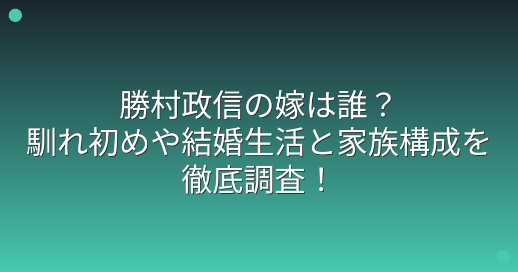 俳優の勝村政信さんといえば、数多くのドラマや映画で活躍されている実力派俳優として知られていますね。 そんな勝村政信さんの嫁について、ファンの間で気になっている方も多いのではないでしょうか。 そこで今回は、勝村政信さんの嫁は誰なのか、馴れ初... -