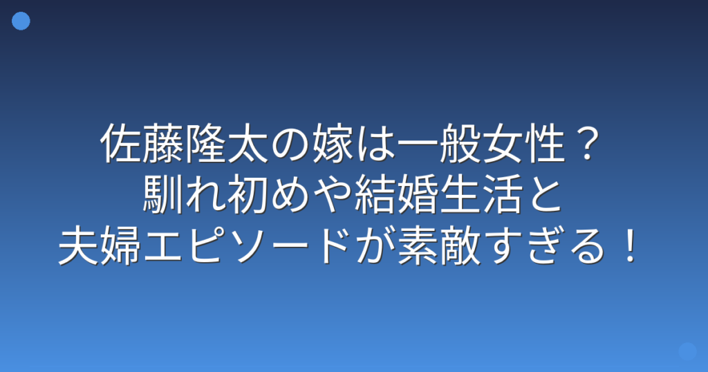 佐藤隆太の嫁は一般女性?馴れ初めや結婚生活と夫婦エピソードが素敵すぎる!