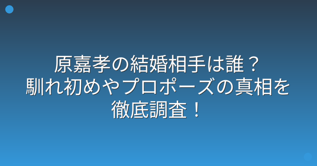 原嘉孝の結婚相手は誰?馴れ初めやプロポーズの真相を徹底調査!