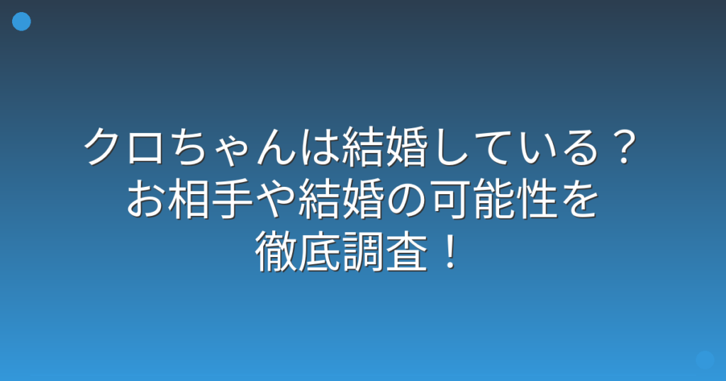 クロちゃんは結婚している?お相手や結婚の可能性を徹底調査!
