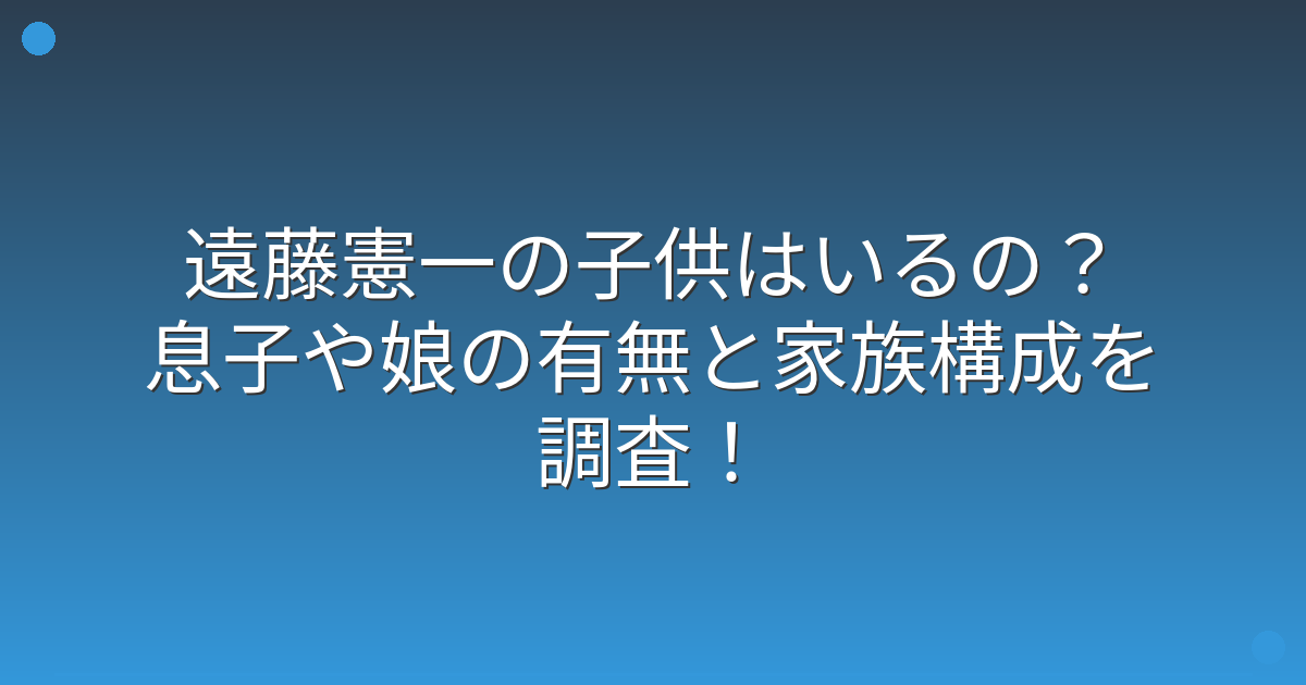 そんな遠藤憲一さんですが、プライベートではどのような家族構成なのか、特にお子さんがいるのかどうか気になっている方も多いのではないでしょうか。