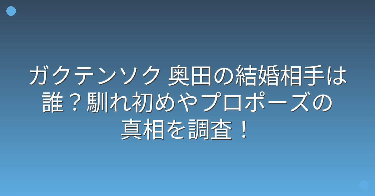 そこで今回は、ガクテンソク 奥田さんの結婚相手や馴れ初め、プロポーズのエピソードについて詳しく見ていきましょう!