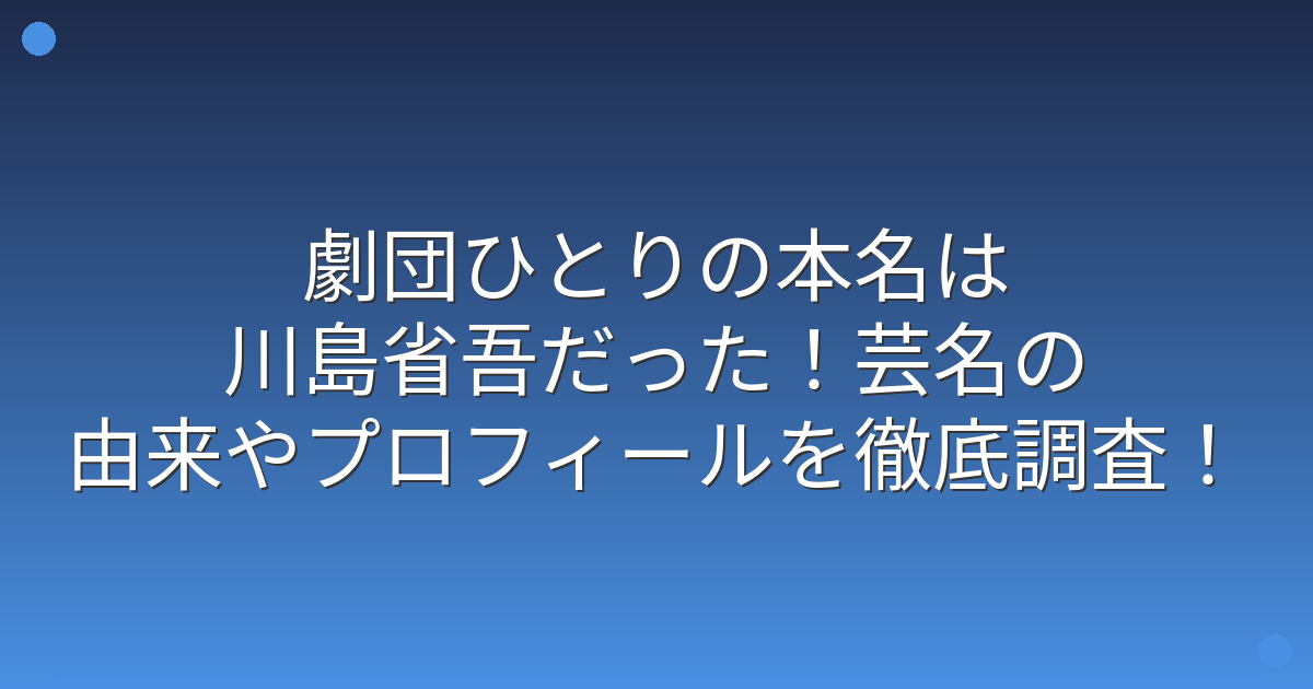 劇団ひとりさんの本名は「川島省吾」で、芸名には「一人で劇団のように様々な役をこなす」という意味が込められています。