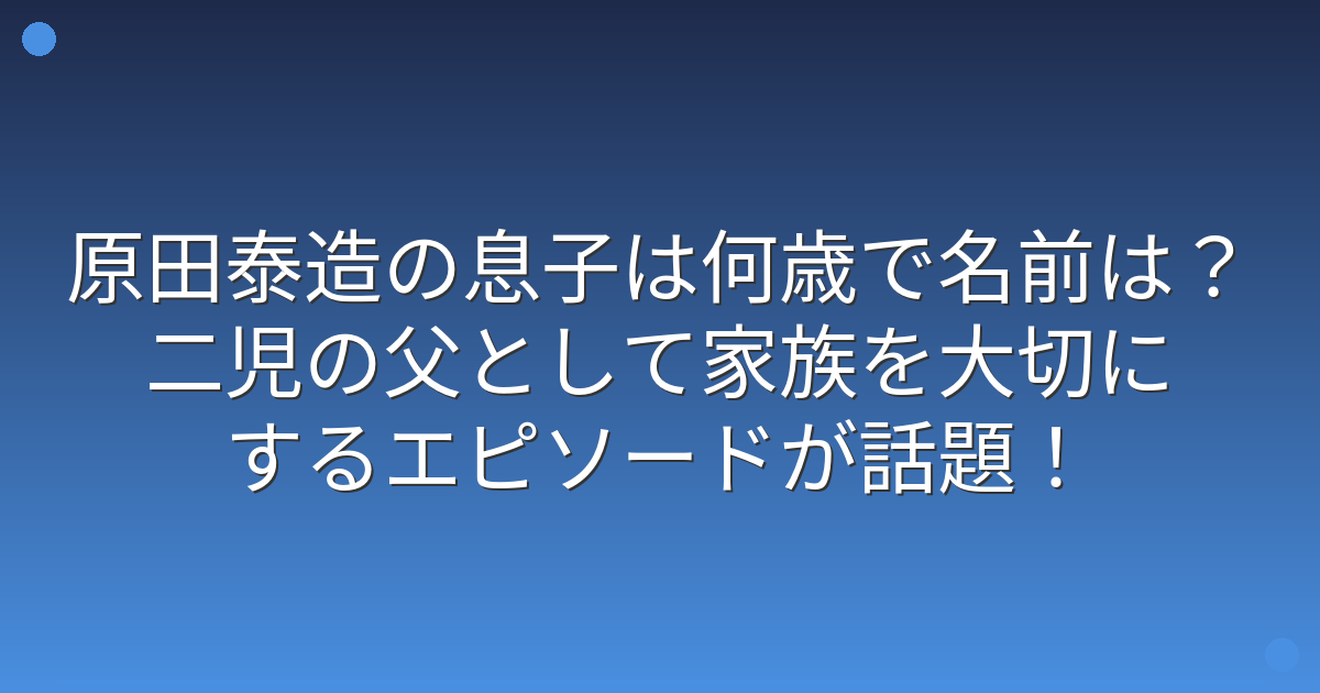 そんな原田泰造さんには息子さんがいることが知られており、家族を大切にする姿勢が注目されています。