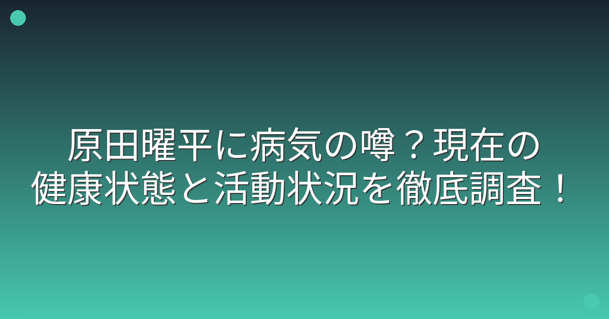 結論として、原田曜平さんの病気に関する公式な情報や信頼できる報道は一切確認できませんでした。