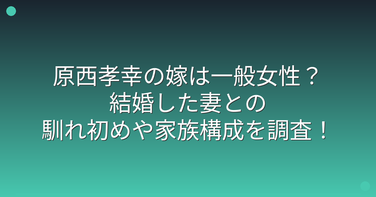 そこで今回は、原西孝幸さんの嫁や結婚、家族構成について詳しく見ていきましょう!