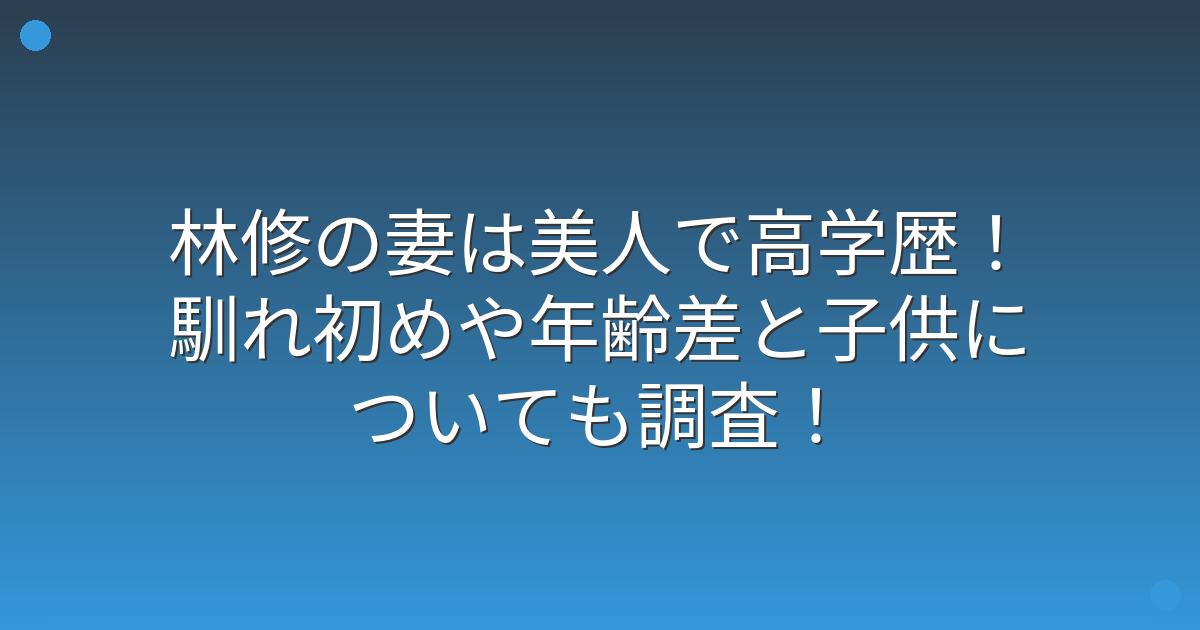 林修さんと妻の馴れ初めについては、知人の紹介で出会ったと言われています。