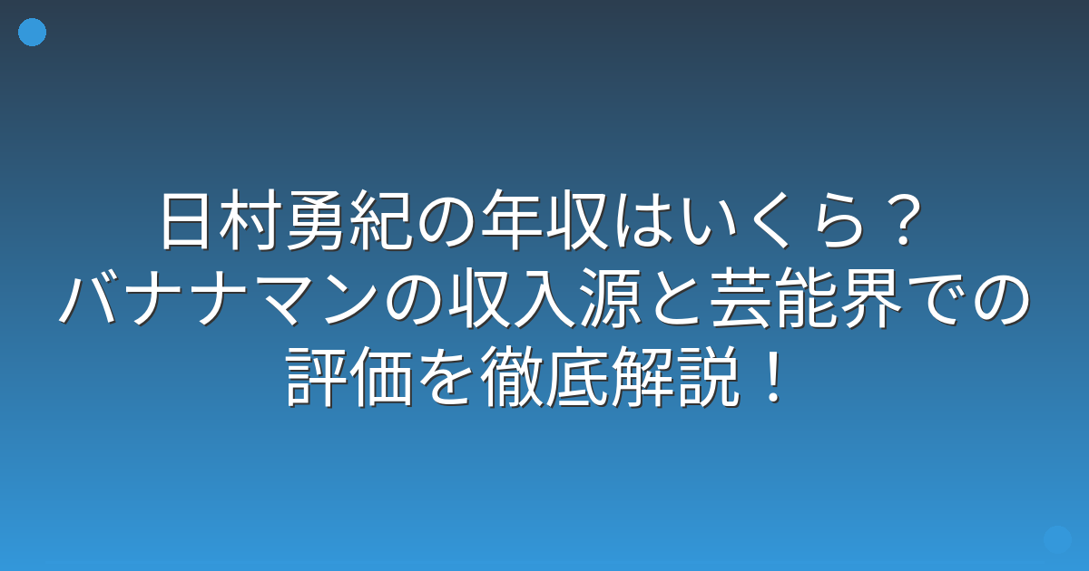 お笑いコンビ・バナナマンの日村勇紀さんの年収について、多くの方が気になっているようですね。
