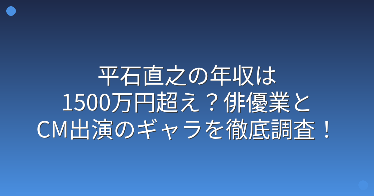 そこで今回は、平石直之さんの年収や俳優業のギャラ、CM出演料などについて詳しく見ていきましょう!