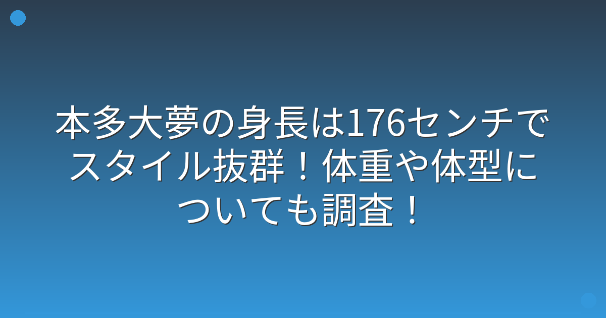 本多大夢さんの身長は公式プロフィールによると176センチで、日本人男性の平均よりも高く、俳優としてバランスの取れた身長であることが分かりましたね。