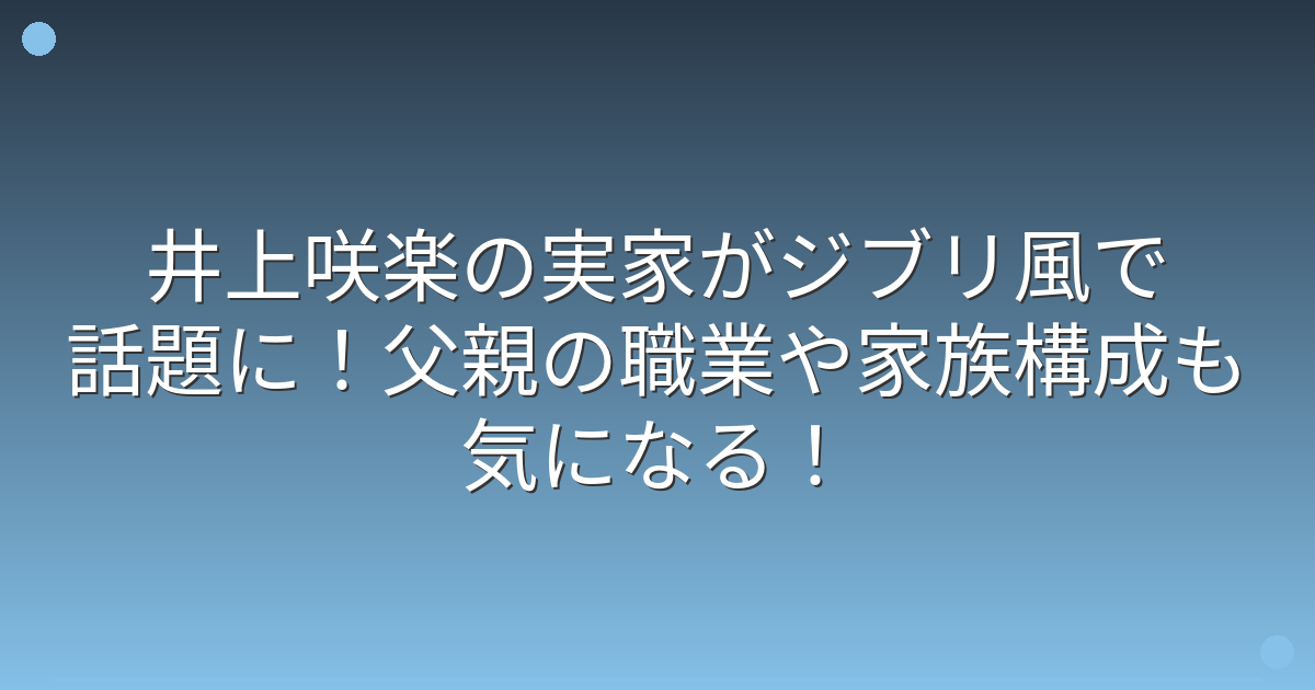 井上咲楽の実家がジブリ風で話題に!父親の職業や家族構成も気になる!