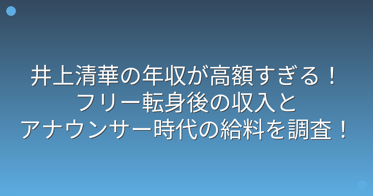 そこで今回は、井上清華さんの年収やフリー転身後の収入、アナウンサー時代の給料について詳しく見ていきましょう!