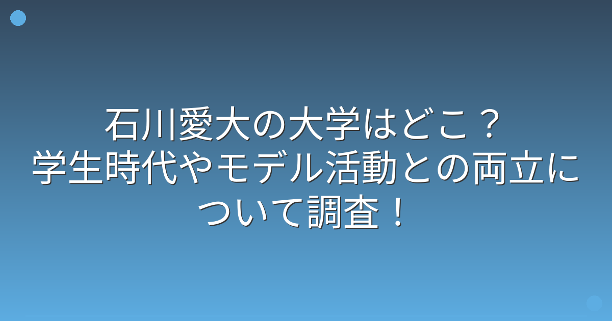 若手モデルとして人気急上昇中の石川愛大さんですが、大学はどこに通っているのか、学生時代はどのように過ごしていたのか気になる方も多いのではないでしょうか。
