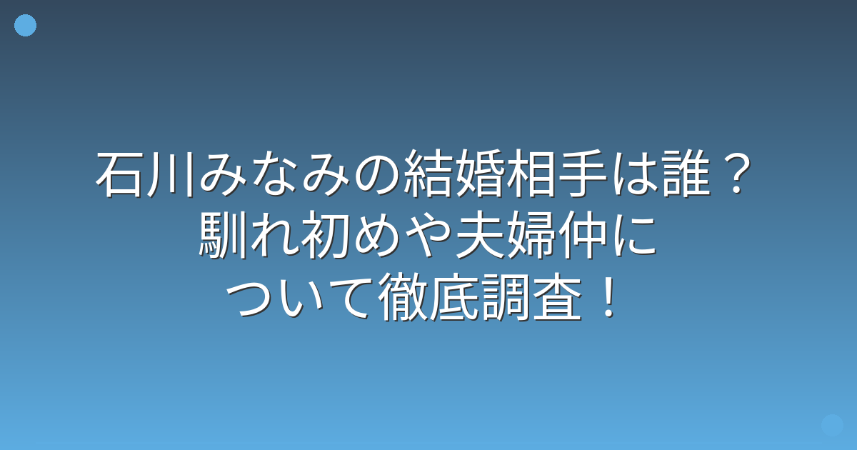 石川みなみさんの馴れ初めについて、気になる方も多いでしょう。