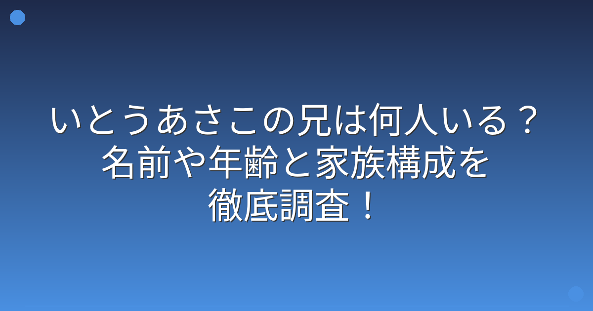 いとうあさこさんには兄が2人いて、3人兄弟の末っ子として育ったことが分かりました。