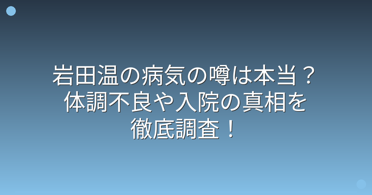岩田温さんの体調不良や入院に関する噂についても、信頼できる情報源からの報道は一切確認できていません