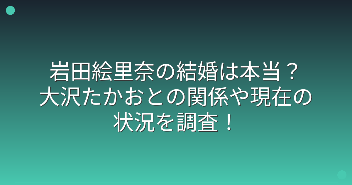 そこで今回は、岩田絵里奈さんの結婚の真相や、過去に報じられた大沢たかおさんとの関係、そして現在の状況について詳しく見ていきましょう!