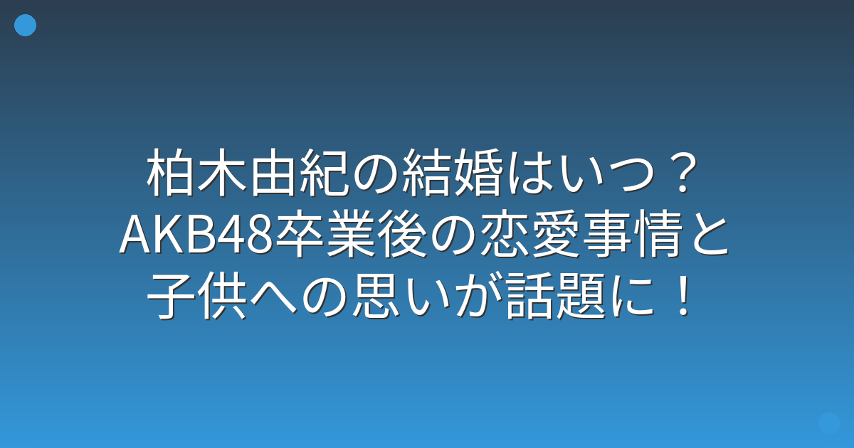 2024年3月にAKB48を卒業後、ソロ活動で活躍する柏木由紀さんですが、結婚に関する噂や憶測が絶えません。