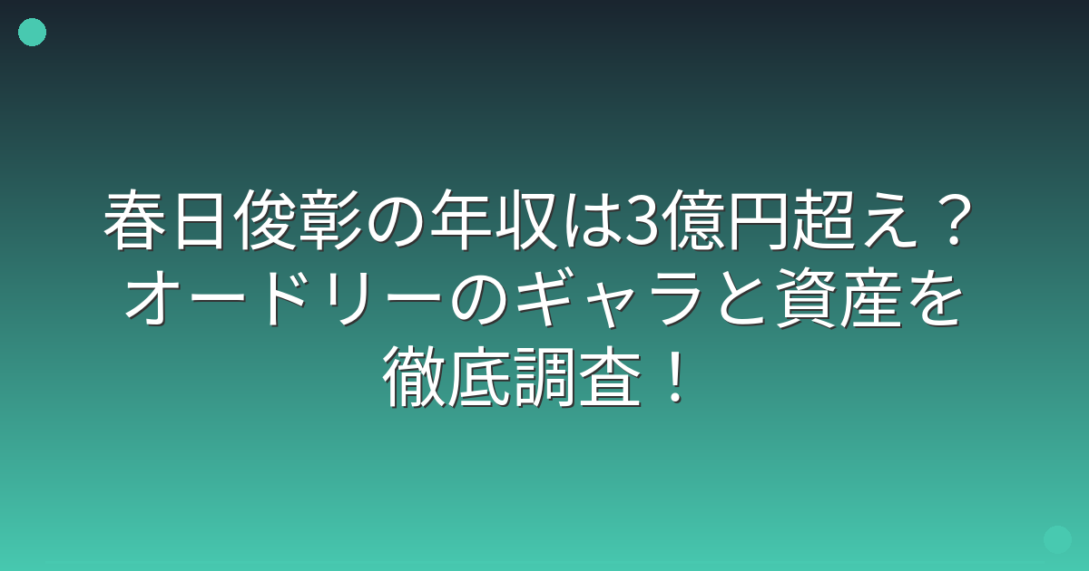 春日俊彰さんの年収は推定3億円を超えると言われており、テレビ番組のレギュラー出演やCM出演などから得られる収入が主な収入源となっています。