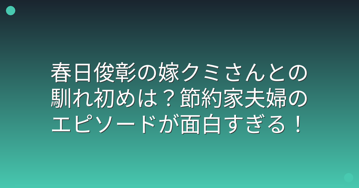 特に春日さんの徹底的な節約エピソードと、それを諌めるクミさんとのやり取りが注目を集めています。