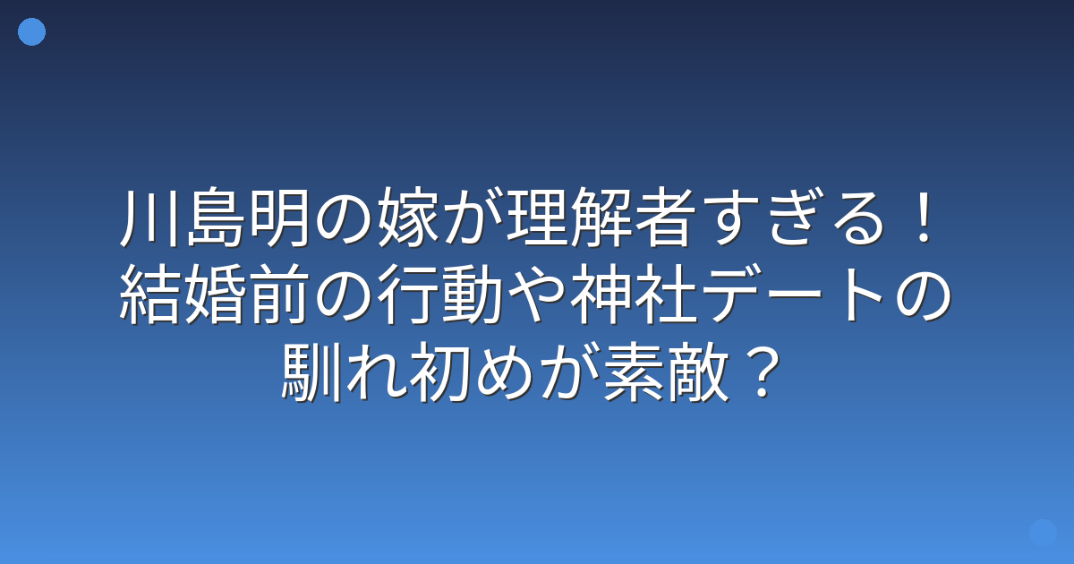 また、川島明さんと奥様の馴れ初めには神社やお寺デートが関係しており、二人の共通の趣味が交際のきっかけになった可能性が高いです。
