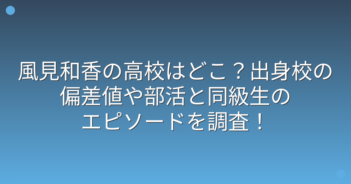 そこで今回は、風見和香さんの出身高校や偏差値、部活動や同級生とのエピソードについて詳しく見ていきましょう!