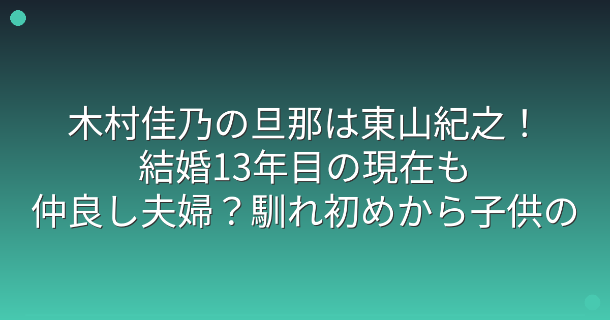 今回は、木村佳乃さんの旦那である東山紀之さんについて、馴れ初めから現在までの様子をお伝えしてきました。