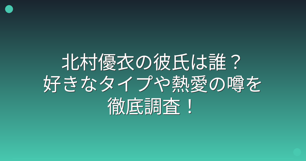 清楚な雰囲気と演技力で人気を集める北村優衣さんですが、プライベートな恋愛事情が気になる方も多いのではないでしょうか。