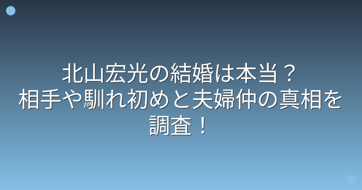 そこで今回は、北山宏光さんの結婚の真相や、相手、馴れ初め、そして夫婦仲について詳しく見ていきましょう!