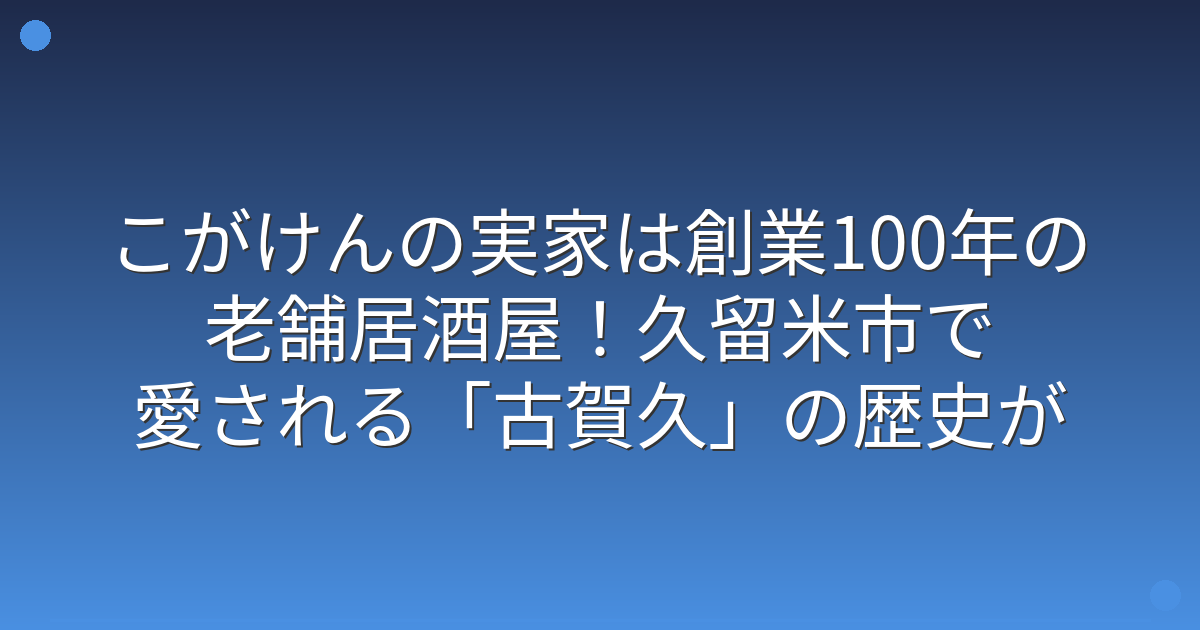 こがけんの実家は創業100年の老舗居酒屋!久留米市で愛される「古賀久」の歴史が凄い?