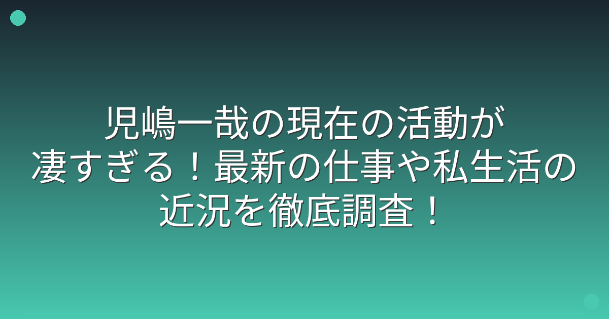 児嶋一哉さんの最新の仕事について、詳しく見ていきましょう。