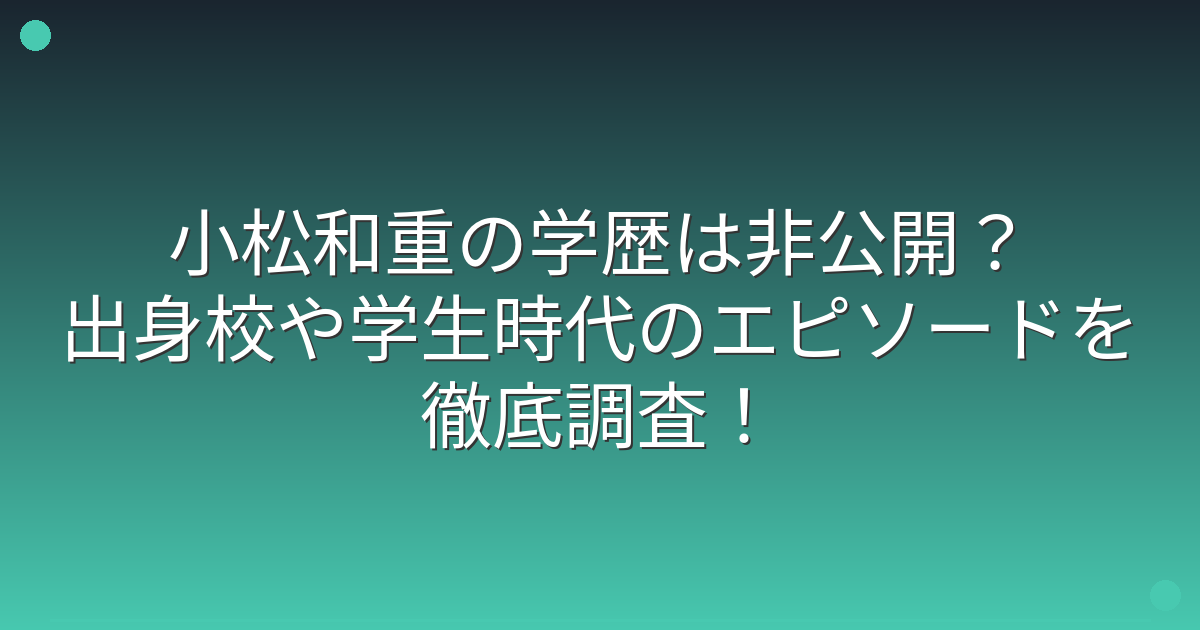 小松和重さんの学歴について調査したところ、出身校や学歴に関する情報は公式には公表されていないことがわかりました。