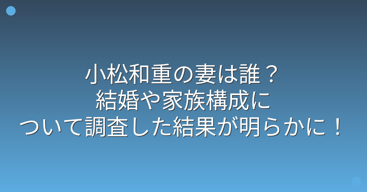 今回は、小松和重さんの妻や結婚に関する情報について調査してきました。