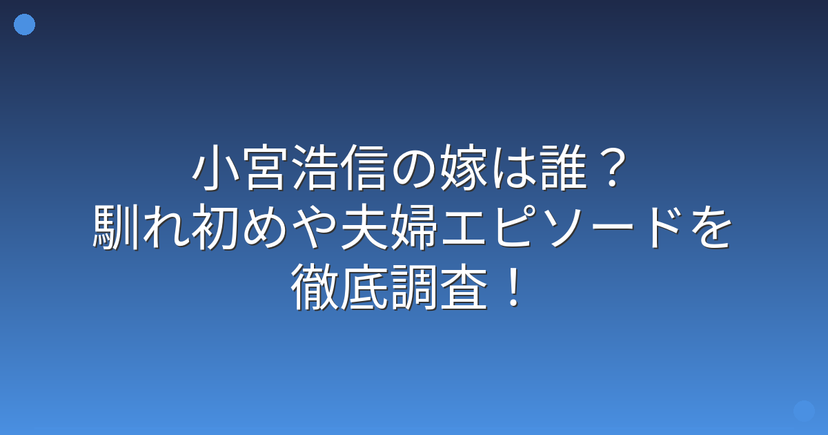 関係者の話では、小宮浩信さんは奥様の落ち着いた雰囲気と、自分を理解してくれる姿勢に惹かれたそうです。
