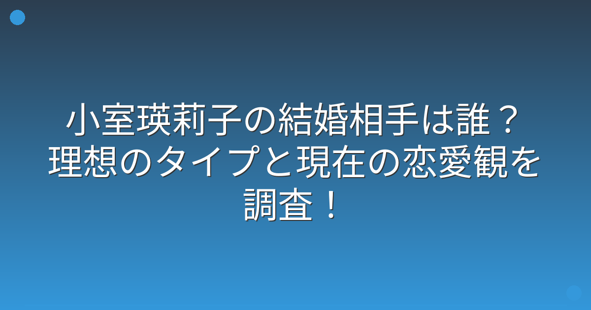 そこで今回は、小室瑛莉子さんの結婚の真相や理想のタイプ、現在の恋愛観について詳しく見ていきましょう!