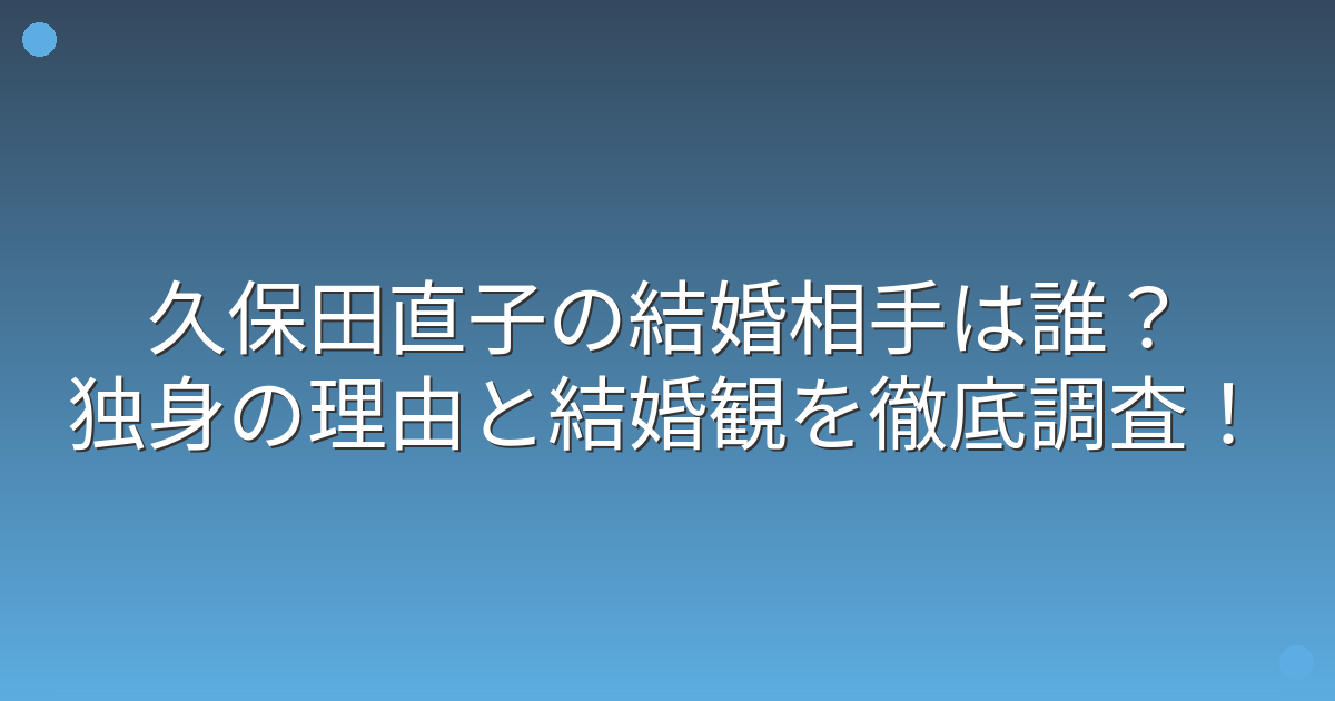 そこで今回は、久保田直子さんの結婚事情や独身の理由、結婚観について詳しく見ていきましょう!