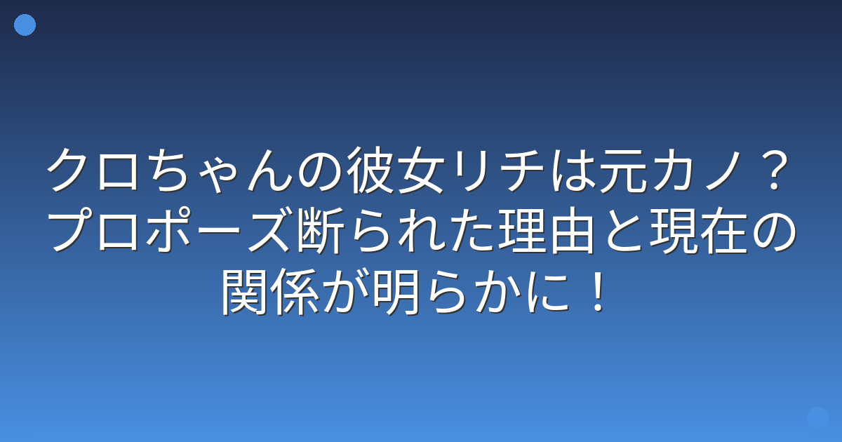 今回は、クロちゃんさんの彼女であったリチさんとの関係や、プロポーズが断られた理由、そして元カノからのLINEに号泣した経緯についてお伝えしてきました。