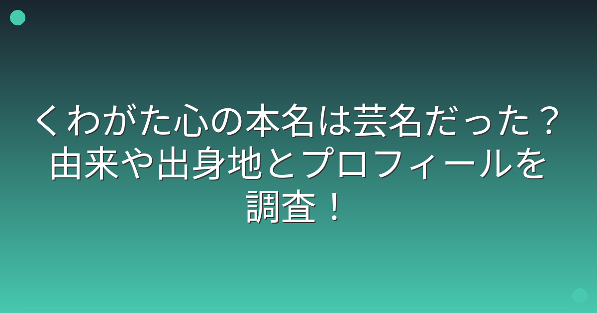 「くわがた心」という名前は本名なのか、それとも芸名なのか気になっている方も多いのではないでしょうか。