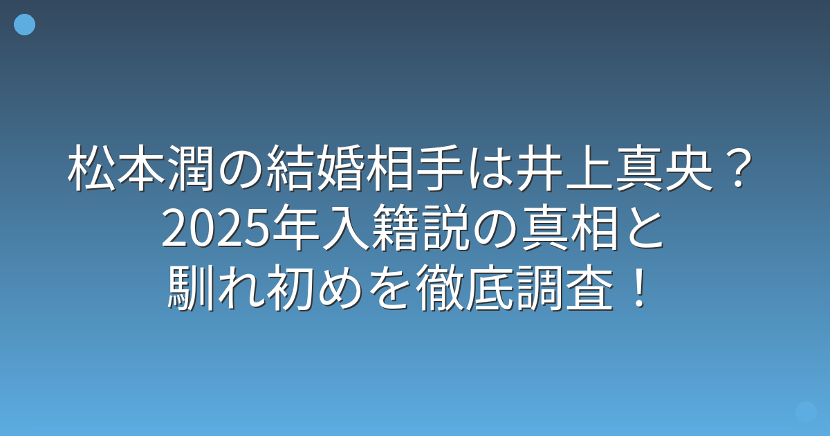 特に2025年11月現在、女優の井上真央さんとの電撃入籍説が再燃しており、SNSでも「松潤 結婚」がリアルタイム検索ワードとして注目を集めています。