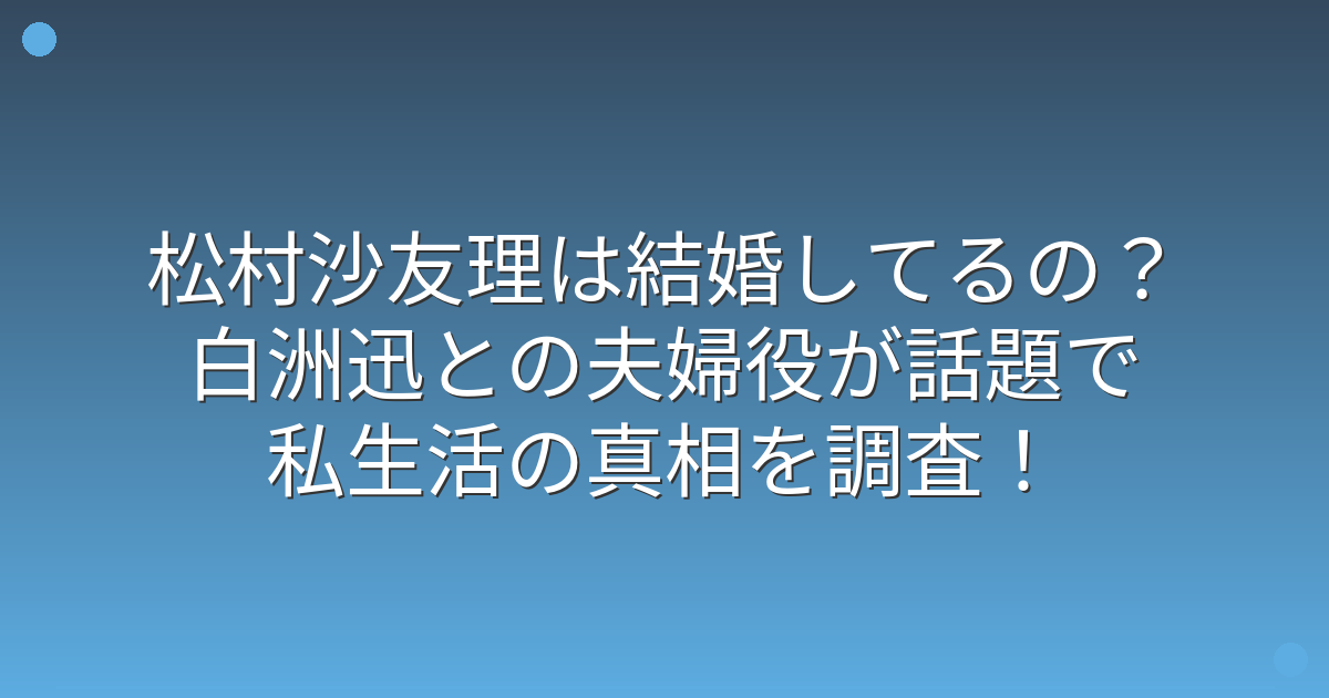 今回は、松村沙友理さんの結婚の真相や、白洲迅さんとの夫婦役について詳しくお伝えしてきました。