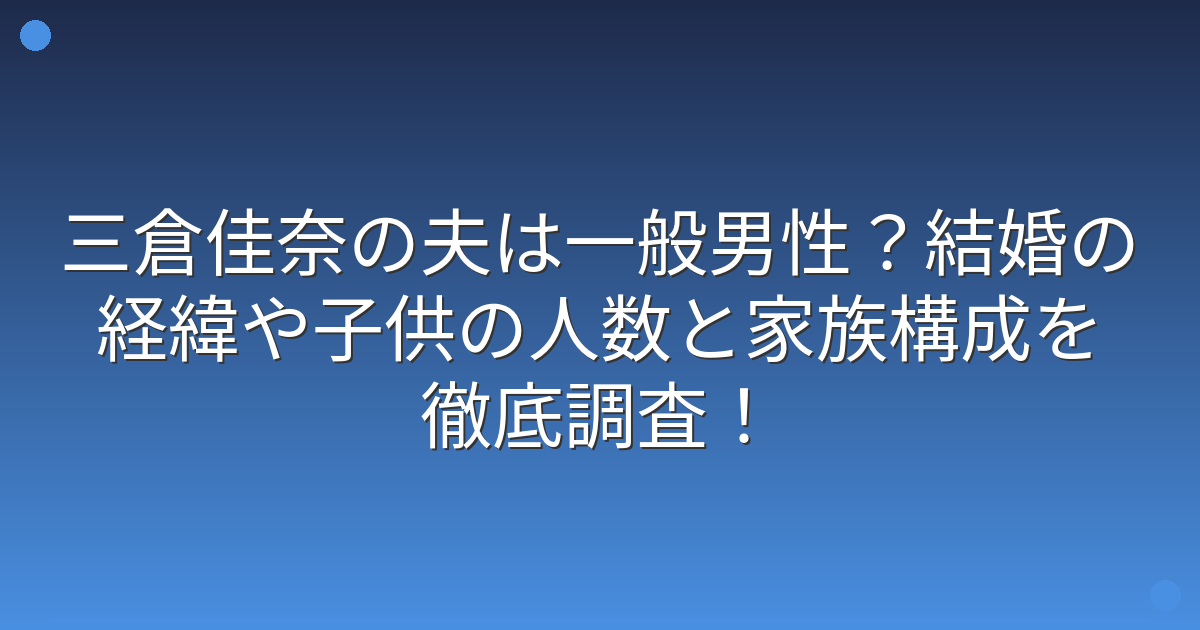 夫の詳細は公表されていませんが、家事や育児に協力的で、三倉佳奈さんの仕事にも理解のある方だと言われています。