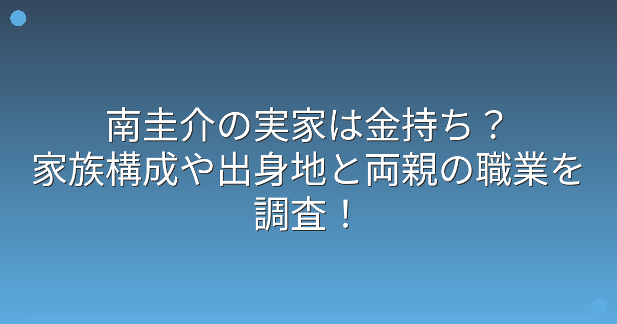 そこで今回は、南圭介さんの実家は金持ちなのか、家族構成や出身地、両親の職業について詳しく見ていきましょう!